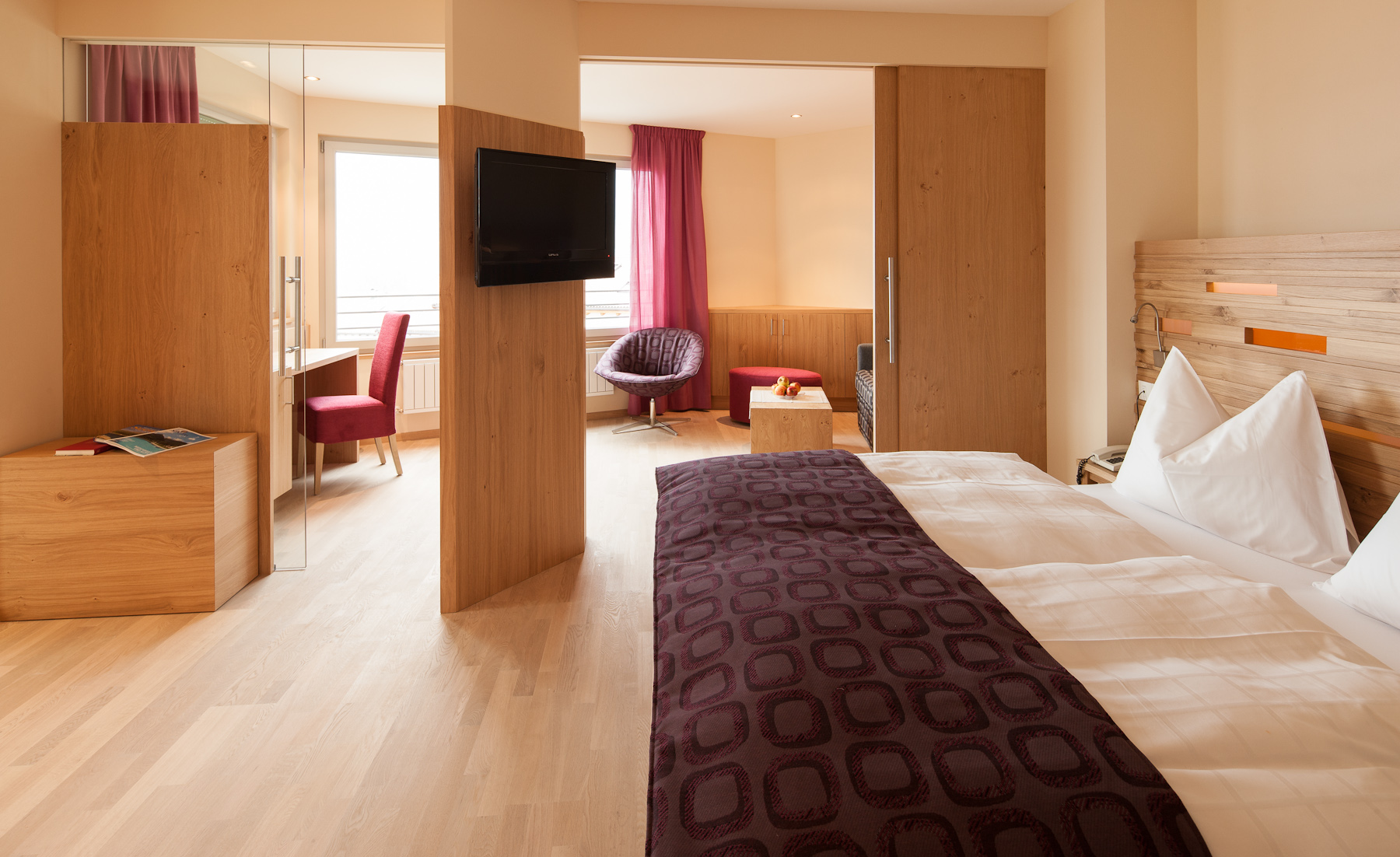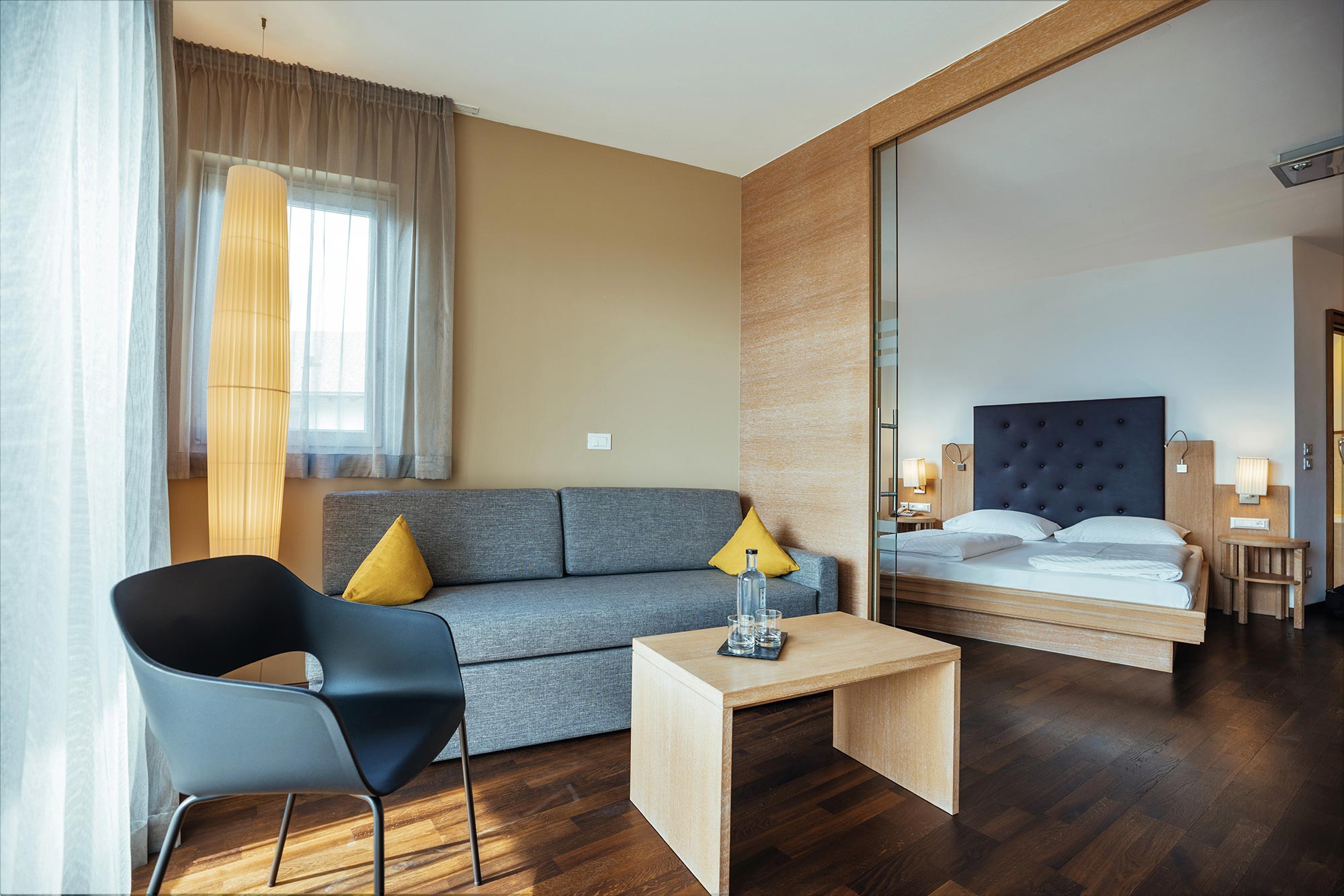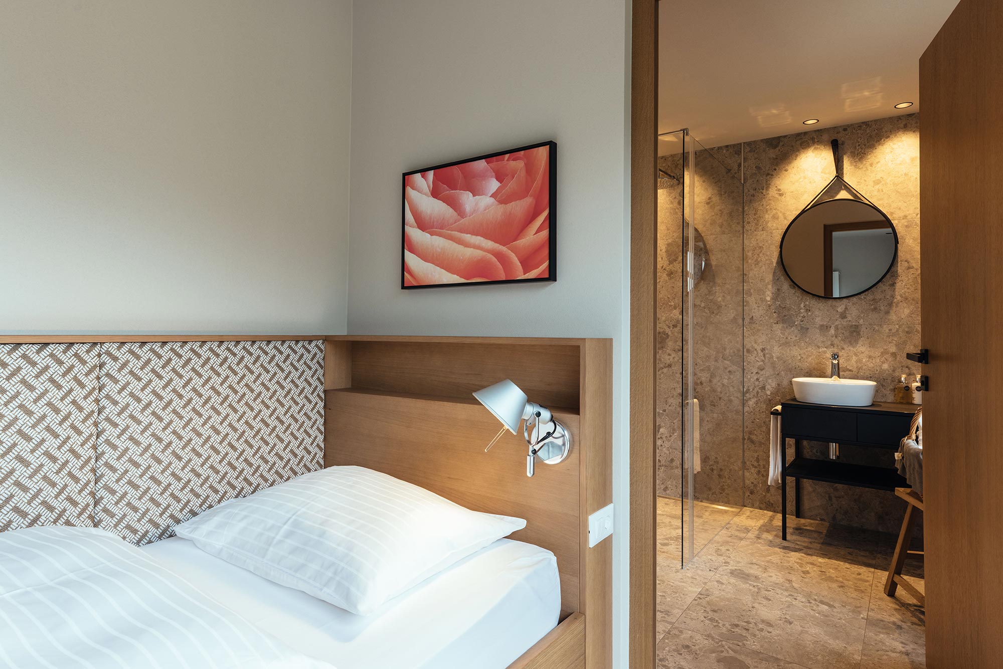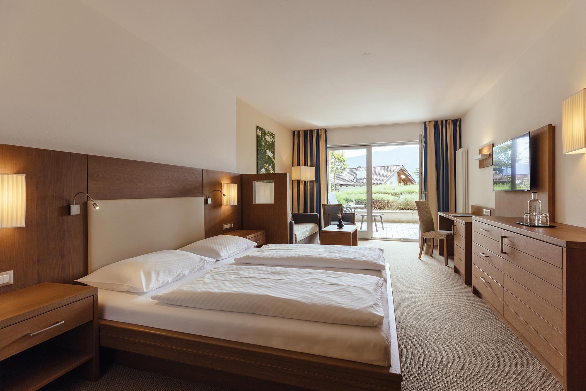 Unser Wellnesshotel hat nur 43 Zimmer. Deshalb fühlt sich das Wohnen hier eine Spur privater und persönlicher an. Der Einrichtungsstil ist zeitgemäß, die Atmosphäre gemütlich. Viel Licht, heimisches Holz und warme Farben. Die allermeisten Zimmer lenken den ersten Blick beim Aufwachen in die Berge und auf das Meranerland. Da bleibt einem fast nichts anderes übrig, als – hopp hopp – das kuschelige Nest zu verlassen und herrlich ausgeschlafen in einen neuen Urlaubstag zu starten… los geht’s!